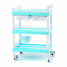 Стол манипуляционный с тремя полочками, сделанный целиком из белого пластика*, с трёхсторонними боковыми ограждениями на полках